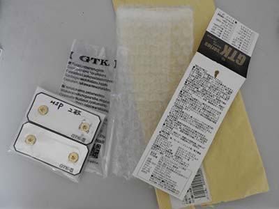 「GTK-III/HSP」とネーミングされた2枚のシート。3×7cmくらいの大きさ。