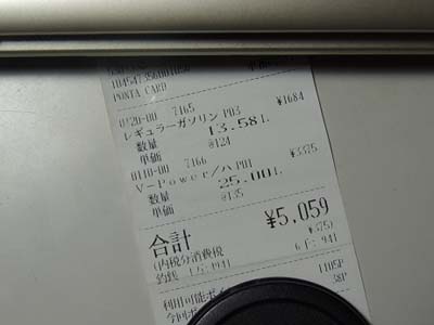 ハイオクガソリン9Lを先に給油して、レギュラーガソリン給油でギリ満の給油を行います。ギリ満は、たいがいGSの店員さんにおまかせ。ガソリンの入れ具合を心得ているだろうと考えたから。
