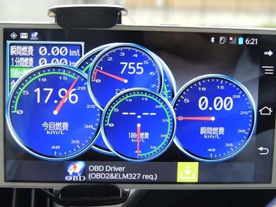 タウンエースにはデジタル燃費計「OBD Driver」が装備されています。本品はおなじみのイシダR&D社「燃費博士」のスマホバージョンといえばわかりやすいかな? ソフトはインターネットから無料でダウンロードできます。このOBD Driverの詳細は、別サイトを立ち上げてレポートする予定。