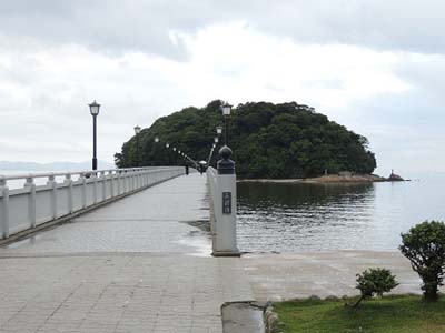 画像の蒲郡の竹島は、本土から約400mの竹島橋がかけられていて、夜間は無人島となります。