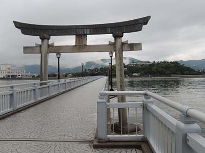 竹島橋を渡り終えて竹島大鳥居をくぐり、竹島側から対岸を振り返るときに見られる画像。