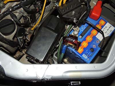 マイカーでは、すでにスプリットファイヤ社製品のアーシング処理のために、マイナス端子が大きめのクリップで止められているので、手持ちの150mm結束バンドで固定となりました。