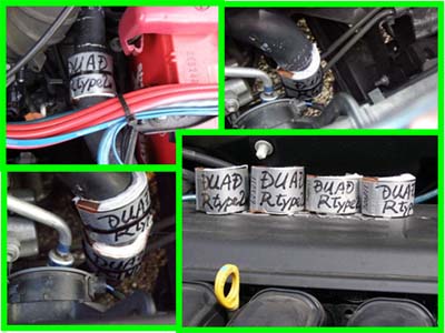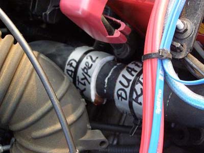 デュアドRタイプが単品の場合は、ロアホース(冷却水がラジエター本体からエンジンへ流れるホース)に装着するのが効果的と、某サイトから情報収集。3本目だったら、当然、ロアホース側となります。 |