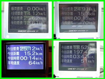 左上;東名高速秦田中井IC〜厚木IC間の区間燃費を計測。この区間は下りより上りの方が、下り勾配が勝っているので、東京に向かって走った方で好結果が出ます(笑)。 右上;マイカーのウィッシュ1.8L4AT4WD※(10・15モード燃費;12.8km/L)では、平均燃費25km/L前後がコンスタントにマーク。 右下;2011年のお盆休みを利用して、東名高速浜松IC〜厚木IC間197.4kmの平均燃費は、18.52km/L。途中、富士川付近、大井松田など3ヶ所で、渋滞にはまりました。よって、平均速度51km/h(苦)。1回の渋滞で平均燃費0.5km/Lダウンは必至。残念。スイスイ走れたら夢の20.0km/Lをオーバーしたかも。 左下;やや渋滞ぎみだった東名高速秦田中井IC〜厚木IC間の区間燃費。 下段2画像とも、デュアドRタイプ2w装着。3回の渋滞にはまっても新型ウィッシュの平均高速燃費17.6km/Lを上回っています。長距離走行の機会はあまりありませんが、平均燃費はまだまだ伸びますよ。 ※ パートタイム4WD |