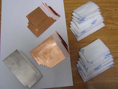 画像を注視すると、各々、銅板の裏と表に銀色のカタリーズが塗られ、裏表の塗布がちぐはぐで統一されていません。ヘンです。これは勇み足の私の失敗。 |