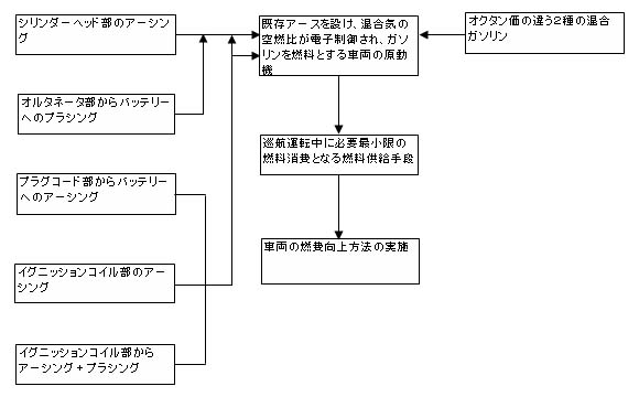 ベース車両となるのは、レギュラー仕様の現行市販車です。画像右の「オクタン価の違う2種の混合ガソリン」とはハイオク-レギュラー混合給油法を指しています。従来よりも点火タイミングを遅らせ、かつ異常爆発も起こらないので、トルクアップします。