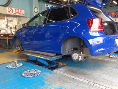 ホイールを外されたポロ |